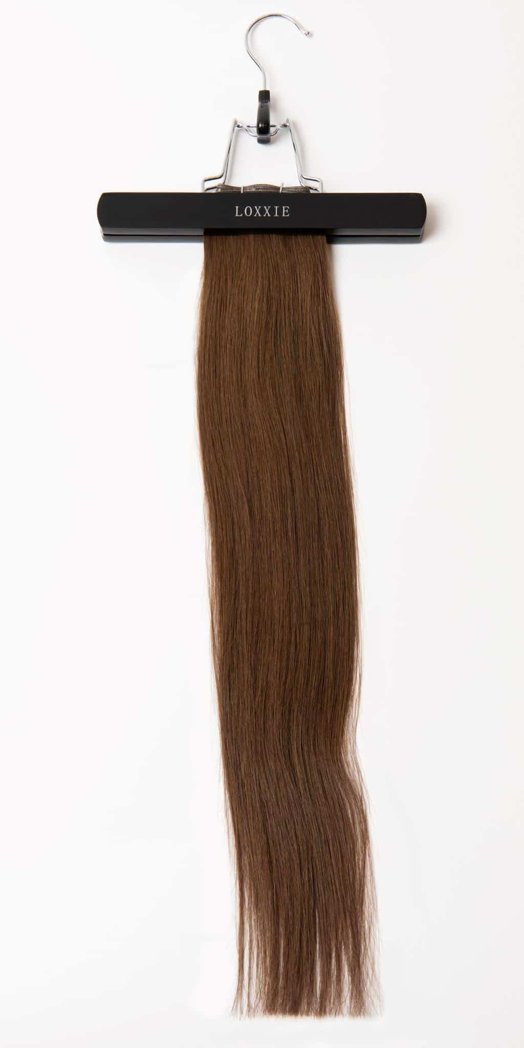 22" Genius Weft Milk Chocolate 55 GramsGENIUS WEFT'SLoxxie Hair Extensions are 100% VIRGIN CUTICLE REMY HAIR and Exceptional Quality! Genius Weft Extensions are the new hot thing in the world of extensions. Genius wefts have a small latex bond at the top of the weft making them light weight, ultra-thin, yet the wefts can be cut and customized unlike hand tied wefts. And BONUS- No return hair/beard! Think of a cross between a flat bonded weft and a hand tied weft. You get the best of both worlds!GENIUS WEFT ORDERING GUIDENot sure how much hair to order? Loxxie genius wefts are sold in 55-gram packages for ultimate color customization! Each genius weft is 33” and can be cut into any size you would like. A minimum of 2 packages (110 grams) is recommended for customers with fine, thin hair. 3-4 packages tend to be the sweet spot for most shoppers. For mega volume and fullness, we recommend 4+ wefts.3-4 packages:22” = 165-220 gramsWe LOVE seeing Loxxie Hair transformations! Send us photos or even better, tag us @Loxxiehairextensions on Instagram and Facebook. We want to see you or your clients new, fun, sexy hair!LEARN HOW TO INSTALL THE LOXXIE METHODWe've been in the hair game for over 24 years and love to share our knowledge. Check out oureducation class schedulefor upcoming classes and become Loxxie certified!TAKING CARE OF YOUR HAIRYou just made a great purchase and taking proper care of your new extensions is very important for longevity and happy hair. Without proper aftercare, your extensions (and natural hair) will damage easily making extensions brittle and not last as long as they should.BRUSHbefore washing. It’s important to gently remove all tangles.AVOIDproducts containing silicone, protein, and keratin. These ingredients cause extensions to become brittle and fragile.WASHwith professional moisturizing hair care products. Thoroughly scrub your scalp and in-between rows. Avoid rubbing the ends of your extensions together while washing. This will create tangles. Condition from mid-shaft to ends. We recommend deep conditioning once a week to keep hair soft and moisturized.AVOID EXCESSIVE HEATHair extensions are sensitive to heat, so it’s important to minimize use of hot tools and blow-drying as much as possible. When using a dryer, it’s recommended to set it on a cooler setting. Don’t forget to use a heat protectant!SLEEPin a satin bonnet or pillowcase to keep hair tangle free and shiny.USEArgan oil 1-2 times a day to keep extensions moisturized. Since extensions don’t get the natural oils from your scalp, it is important not to skip this step!WASHhair as little as possible, 1-2 washes per week is plenty. Drying out your extensions from excessive shampooing is a real threat.BONUS CARE TIPSHard water isn’t good on extensions so, avoid it if possible. Extensions will turn a salmon/pink color and need hard water treatments to get out. Bleaching, perming, or using chemical treatments is a no go. These treatments will ruin your extensions.Plan on swimming in a pool or ocean? Well, the bad news is chlorine and salt water are hard on extensions and can often change the tone of your color, damage hair shafts, cause excessive tangling and matting, and more. When in the water, tie hair in a tight bun and keep dry as much as possible. NOTE- Mineral based sunscreens are best for extensions wearers as regular sunscreens cause discoloration.Follow the above advice to keep your hair looking fantastic!QUESTIONSWe’re ready to help, just emailinfo@loxxie.comor shoot us a text at 801-419-5825