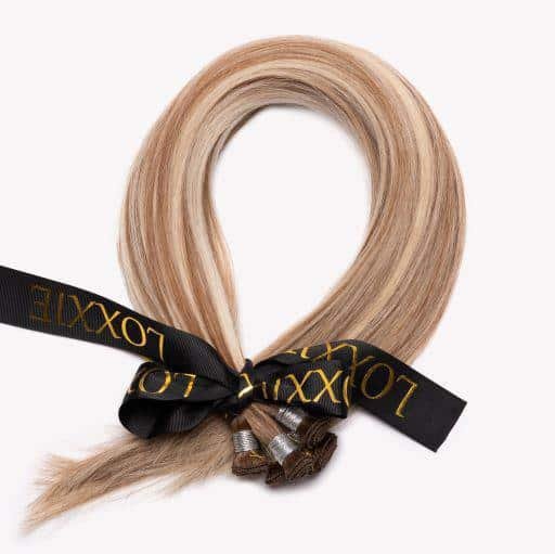 Loxxie 26″ Amaretto Cream- 22 gram weft. 11″ Wide.HAND-TIED WEFT’SLoxxie Hair Extensions are 100% VIRGIN CUTICLE REMY HAIR and Exceptional Quality! Hand Tied Extensions are great for adding volume and length. These sought-after extensions are hand-made, light weight, and lay close to the head. You’ll barely know they’re there!HAND TIED ORDERING GUIDENot sure how much hair to order? Loxxie hand tied wefts are sold in individual wefts for ultimate color customization! A minimum of 6 wefts is recommended for customers with fine, thin hair. 8-10 wefts tend to be the sweet spot for most shoppers. For mega volume and fullness, we recommend 12+ wefts.8-10 wefts:18” 144-180 grams22” 160-200 grams26” 176-220 gramsLoxxie’s Hand Tied Wefts can be installed using theLoxxie Method™, which cantypically be done in 2 hours by a trained stylist.  After the initial installation Hand Tied Extensions need to be moved up every 4-8 weeks depending on how fast your hair grows. The Loxxie Method allows for quick express move ups in between re-installations saving time and money!We LOVE seeing Loxxie Hair transformations!  Send us photos or even better, tag us @Loxxiehairextensions on Instagram and Facebook. We want to see you or your clients new, fun, sexy hair!LEARN HOW TO INSTALL THE LOXXIE METHODWe’ve been in the hair game for over 24 years and love to share our knowledge.  Check out oureducation class schedulefor upcoming classes and become Loxxie certified!TAKING CARE OF YOUR HAIRYou just made a great purchase and taking proper care of your new extensions is very important for longevity and happy hair. Without proper aftercare, your extensions (and natural hair) will damage easily making extensions brittle and not last as long as they should.BRUSHbefore washing.  It’s important to gently remove all tangles.AVOIDproducts containing silicone, protein, and keratin. These ingredients cause extensions to become brittle and fragile.WASHwith professional moisturizing hair care products.  Thoroughly scrub your scalp and in-between rows. Avoid rubbing the ends of your extensions together while washing. This will create tangles. Condition from mid-shaft to ends. We recommend deep conditioning once a week to keep hair soft and moisturized.AVOID EXCESSIVE HEATHair extensions are sensitive to heat, so it’s important to minimize use of hot tools and blow-drying as much as possible.  When using a dryer, it’s recommended to set it on a cooler setting.  Don’t forget to use a heat protectant!SLEEPin a satin bonnet or pillowcase to keep hair tangle free and shiny.USEArgan oil 1-2 times a day to keep extensions moisturized. Since extensions don’t get the natural oils from your scalp, it is important not to skip this step!WASHhair as little as possible, 1-2 washes per week is plenty.  Drying out your extensions from excessive shampooing is a real threat.BONUS CARE TIPSHard water isn’t good on extensions so, avoid it if possible. Extensions will turn a salmon/pink color and need hard water treatments to get out. Bleaching, perming, or using chemical treatments is a no go. These treatments will ruin your extensions.Plan on swimming in a pool or ocean?  Well, the bad news is chlorine and salt water are hard on extensions and can often change the tone of your color, damage hair shafts, cause excessive tangling and matting, and more. When in the water, tie hair in a tight bun and keep dry as much as possible. NOTE- Mineral based sunscreens are best for extensions wearers as regular sunscreens cause discoloration.Follow the above advice to keep your hair looking fantastic!QUESTIONSWe’re ready to help, just emailinfo@loxxie.comor shoot us a text at 801-419-5825
